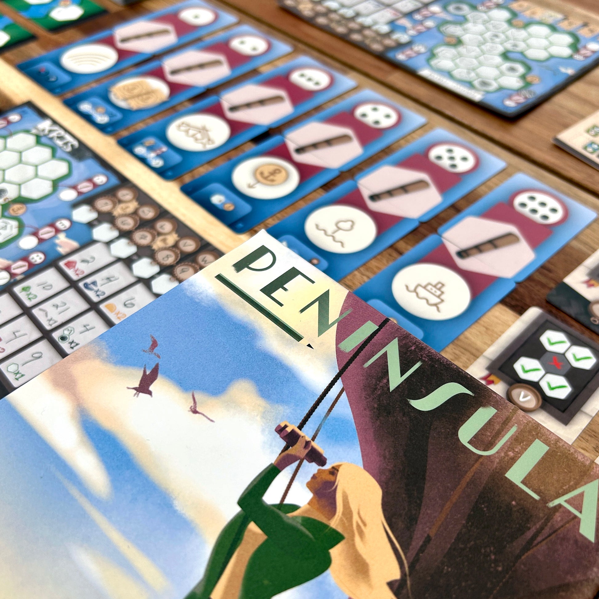 Cada sesión de Peninsula dura solo 30 minutos, lo que lo hace ideal para juego en solitario o noches de juego en grupo. Con una profundidad nivel Kennerspiel y un formato de caja pequeña, Peninsula ofrece una experiencia estratégica rica en un paquete compacto. No te dejes engañar por su tamaño: este juego proporciona horas de juego atractivo.