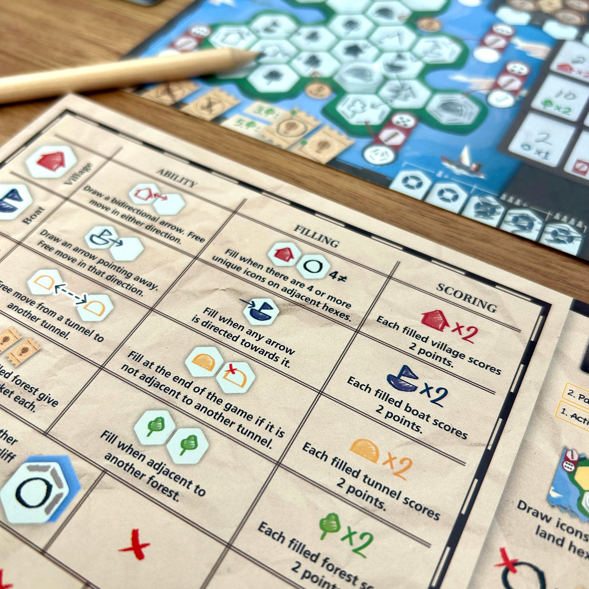 En este juego de voltear y escribir, tu arquitecto recorre la isla para desarrollar aldeas, excavar túneles, plantar bosques y más. La infraestructura estratégica es clave para navegar la isla de manera eficiente. Los íconos otorgan habilidades únicas y oportunidades de puntuación. Completa misiones y alcanza puntos de referencia para desbloquear bonificaciones poderosas.